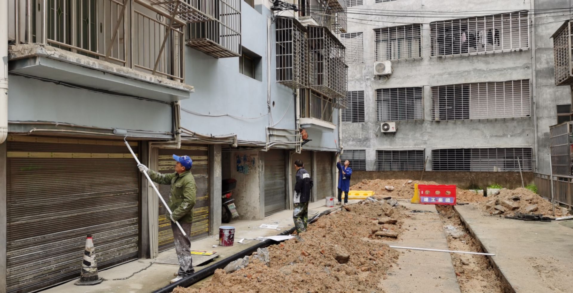 4月4日,記者實(shí)地走訪了廖家牌廉租房小區(qū)、積翠花園小區(qū)、續(xù)畈小區(qū)等多個(gè)老舊小區(qū)改造現(xiàn)場,只見工人們干勁十足、加緊施工,處處是一片熱火朝天的景象。